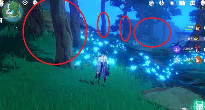 孔雀木主要在镇守之森,也就是神里任务中跳舞的那个地方;说实话这个地方光线很暗,不过好在树木比较多,而且大部分都聚集在一块,显得砍伐起来非常轻松。推荐一圈循环后再到传送点继续砍树。