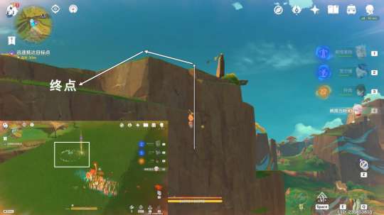 抵达山顶,前往侧面的终点,与阿蕾梅对话