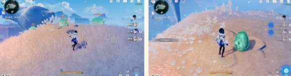3、接着前往最后一个浮岛,在击败风史莱姆后攻击右侧的绿色石头就会出现风场。