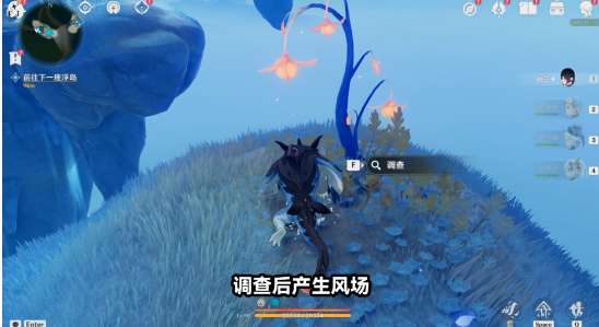 2、达到后前往下一个浮岛并点击图中的调查按钮。