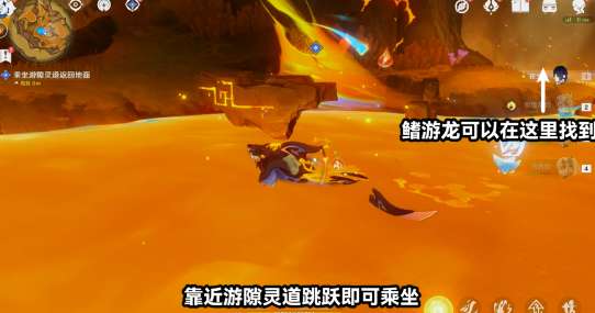3、达到图中位置后快速前往魂附鳍游龙处就能找到第一处的揭录文。