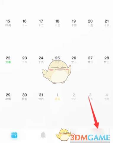 1、进入日历清单app首页,点击底部箭头所指的图标。