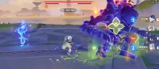 3、将敌人身上的雷元素驱除后,依次使用草神、香菱和芙宁娜的大招,接龙王重击即可轻松过关。