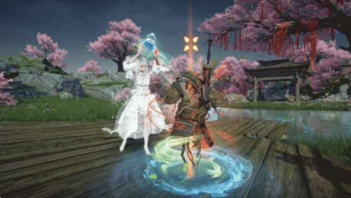 她的表情动作会开启应援信号,在舞台上面放声歌唱,她的外观会站在缀满繁花的梦幻花台上面抬手轻挥,救援特效会高举绘有铃兰的幻彩水壶,将青碧水流倾泻而出,藤蔓也会从水面开始疯长。