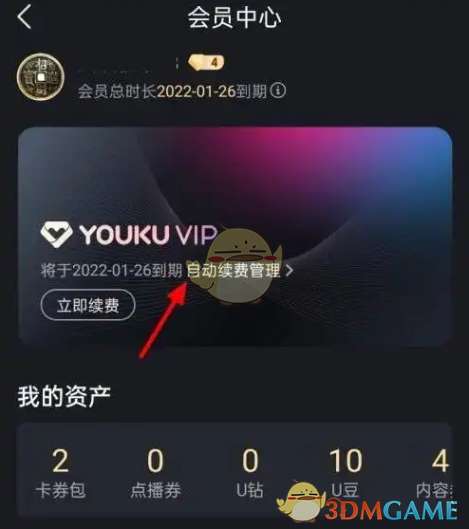 4、在会员中心页面,找到并点击“自动续费管理”或类似选项。