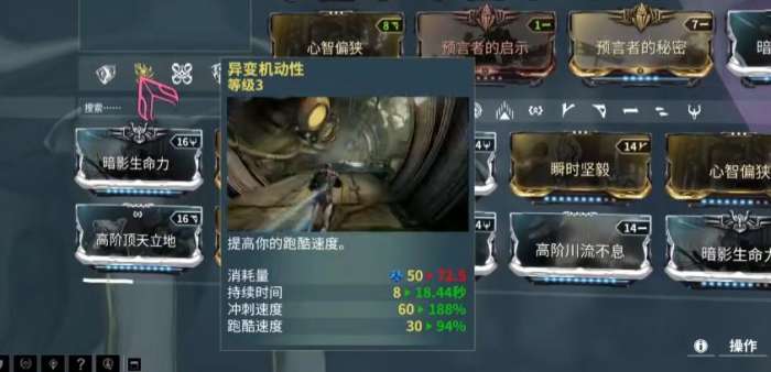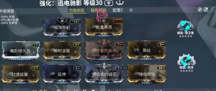 【泛用型超跑配卡】适用于日常刷图、资源采集及中长距离快速转场。核心思路是平衡能量续航、技能持续时间与范围覆盖能力。推荐MOD组合为:腐蚀投射、能量奔流、高阶持久力、瞬时坚毅、预言者的启示、简化、过度延展、延伸、预言者的远见、弹指瞬技;赋能选择保卫者与充沛。该配置下,马赫冲驰(1技能)触发频率高,配合赤限(4技能)开启后显著降低技能能耗,整体节奏流畅稳定。
