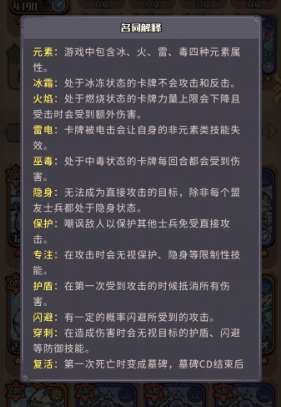 有些卡牌的攻击带有元素属性,这是游戏里对元素的介绍: