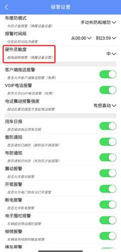 3、在报警设置页面中点击硬件灵敏度按钮;