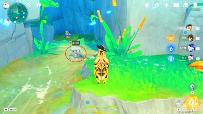 在此处可以看到一个摩拉箱,价值10000摩拉(其实是「摩拉石堆」)