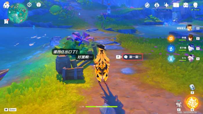 在此处可以看到一个「对话」,听他们说完话后,我们获得一个摩拉箱,价值10000摩拉