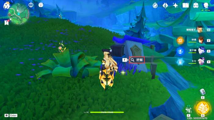 在此处可以看到一个挖掘点,我们靠近与其交互一下