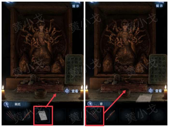 27.把【画纸】放到桌子上,再将【香】插入香炉,触发剧情