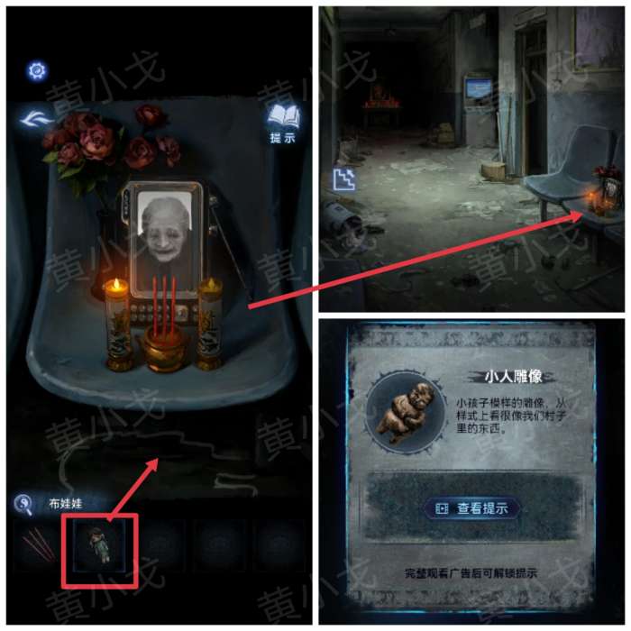 15.点击椅子上的唱戏机,把【布娃娃】放到人形线上,触发剧情,获得【小人雕像】