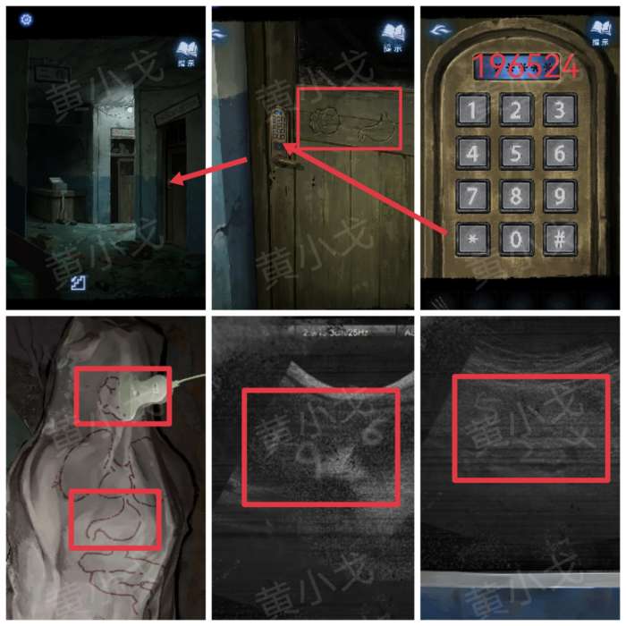 19.点击特需病房门上的密码锁,根据上面的图案提示,结合[一楼房间]通过探头和仪器看到的线索,输入密码:196524