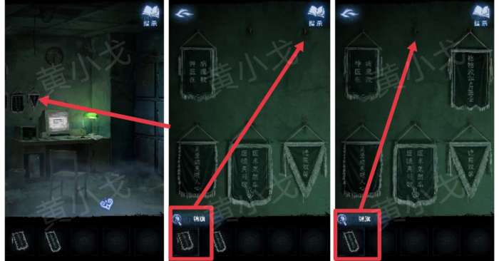 8.点击桌子上的医疗箱,根据上面的红十字图案提示,调整医疗箱上的密码锁为红十字图案;打开医疗箱,获得【医用钳】和【锦旗】