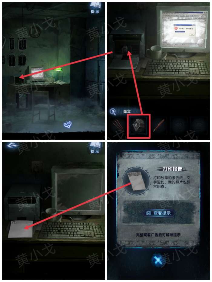 24.点击桌子上的打印机,装上【墨盒】,获得【打印报告】
