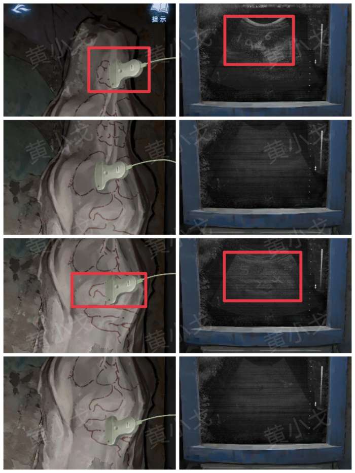 18.分别把探头放到脑、心脏、肾和肠区域,然后查看仪器,获得线索