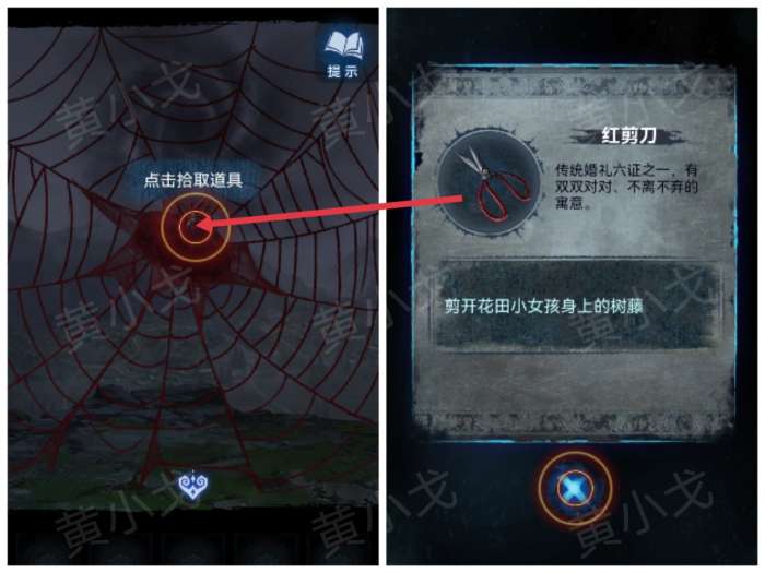纸嫁衣8千子树游戏已经上线了,开局是在山崖边的红线团中取出【红剪刀】,用【红剪刀】剪开小女孩身上的树藤。然后进入第一章,下面是“黄小戈的魔法盒子”给大家带来的《纸嫁衣8千子树》第一章详细攻略图解,感兴趣的小伙伴们一起来看看吧。