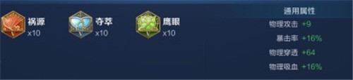 【10祸源+10夺萃+10鹰眼】,16%的暴击加上装备提供的85%暴击概率,就可以达到100%的满暴击。届时一技能射出去的每一发子弹都会触发暴击效果,秒杀脆皮英雄那就是一梭子弹的事情。