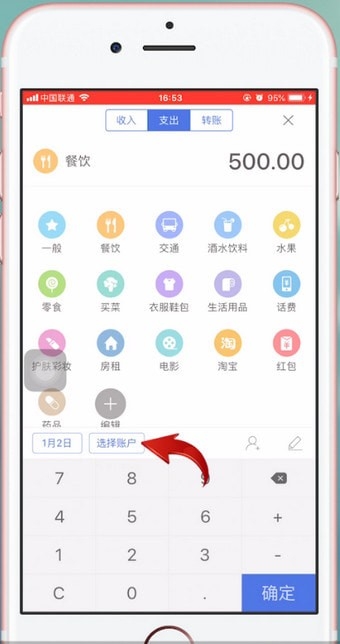 2、创建一笔订单,输入消费类型、消费金额,再选择付款账户;