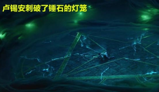 在赛娜CG《暗影之拥》里,卢锡安并非锤石的对手,开打没两下器材就被锤石用钩子打飞了。锤石慢慢靠近卢锡安,并露出了狂笑,准备取走他的灵魂。在这千钧一发之际,卢锡安用一件神秘装备刺破了锤石的灯笼,灯笼里的绿影一涌而出。