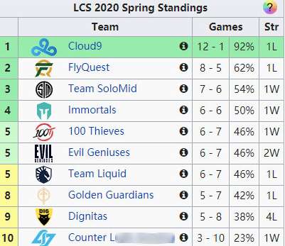 除了TSM终结了C9的连胜纪录外,上周两战全胜的TL不敌垫底的CLG,错过了排名进入积分榜前三的好机会。
