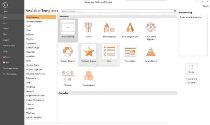 打开亿图流程图制作软件,进入其主界面;