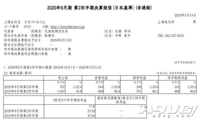 日本Falcom公开19-20财年Q2财报,前半年累计营业额7.07亿日元同比减少32.4%、营业利益3.44亿日元同比减少50.8%。虽然减收减益,但仍高出预期,主要是因为《伊苏8》和《东京迷城eX+》等游戏在欧美地区博得好评,并且控制了宣传费用。