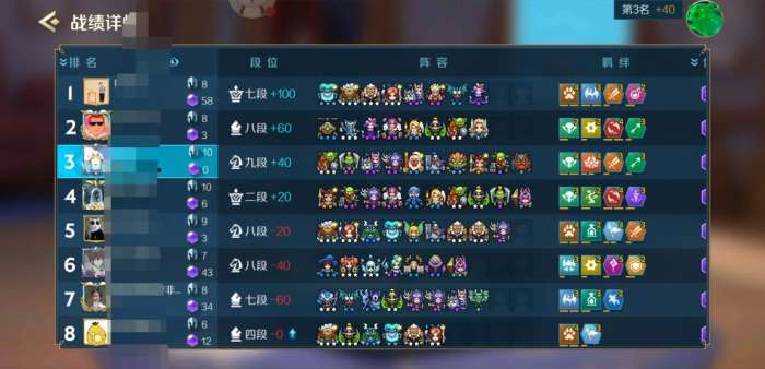 战歌的人口数太多,高费卡不上7拿不到,人品不好必须上8,我的阵容需要达成羁绊势必要放弃一些吃利息的机会。你在看这几把吃鸡的阵容,清一色最起码白卡三星加极少的紫卡或橙卡,有几把甚至人家少我两人口,这在自走棋真的是难以想象的好吗?