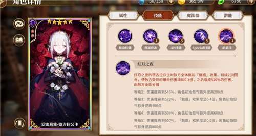 必杀:对敌方造成520%的伤害(就一宝来说伤害很高,比大库,贝蒂伤害都高),之后是两到三回合的增加爆伤的buff,对于暴击对来说是是十分有用的(也就是说emt需要配的是暴击类角色)