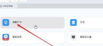 2、打开“工作台”后,鼠标移动到“考勤打卡”上,并点击。