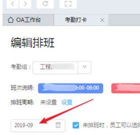 4、随后会打开“考勤打卡”页面。先在下方的日期选择要排班的日期,比如这里选择十月份。
