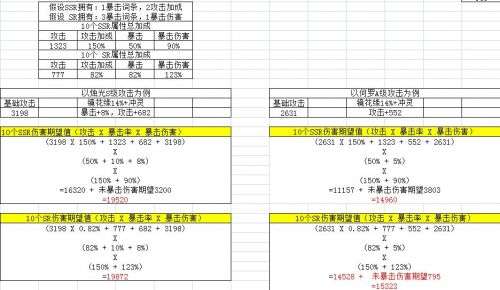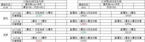 1、如下图,当 SR 的副属性有 2~3暴击 2~1爆伤的时候,伤害期望值是不比 3 条输出属性的SSR灵器差的。