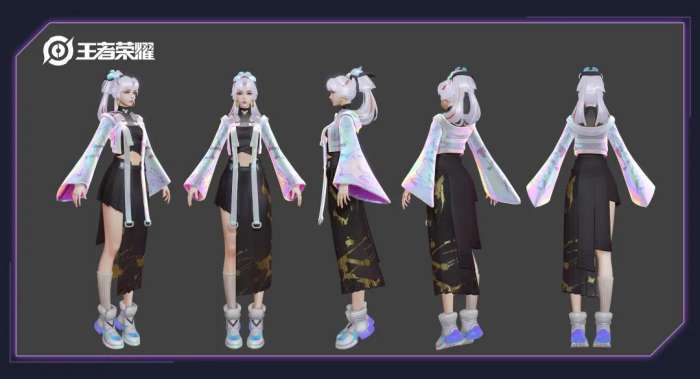 基于此,在整体造型设计上延续了天狼星计划系列的设计要素:绚丽的色彩、潮流的机能服搭配、隐藏的超能力,同时有效结合了上官婉儿皮肤设定中的一些身份元素。