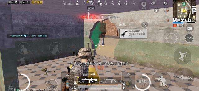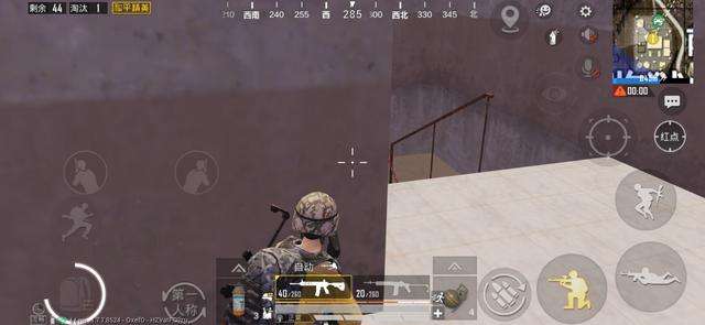 第二, 枪口对着二楼楼梯口,保持瞄准状态上楼。这样虽然可以第一时间进行对枪,但多多少少还是降低了移速。