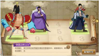 站位分布:一号位新世界弗兰奇前排抗伤;四号位卡塔库栗;九号位新世界乔巴直面对位;十一号位新世界布鲁克,十二号位藤虎避免对位。保证两个主力输出吃到速度加成。