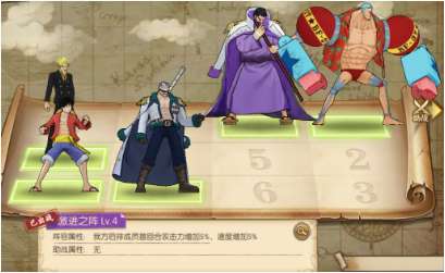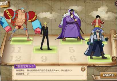 在速度极其接近的荣耀赛,且大多数不带青雉助战的情况下,急速之阵的百分之十加成可以说太给力了,阵容站位一号位新世界布鲁克,三号位藤虎,四号位卡塔库栗,八号位新世界乔巴直面对位(吸收伤害回血),十号位新世界弗兰奇。保证三位输出都能吃到速度buff加持的同时生存能力相对较强的新世界布鲁克和卡塔库栗站一三号位避免藤虎直面对位。