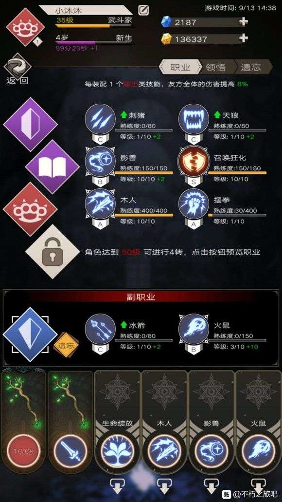 最后就是带上核心之一的生命绽放(这个技能前期不需要点多高,优先前面的技能。)