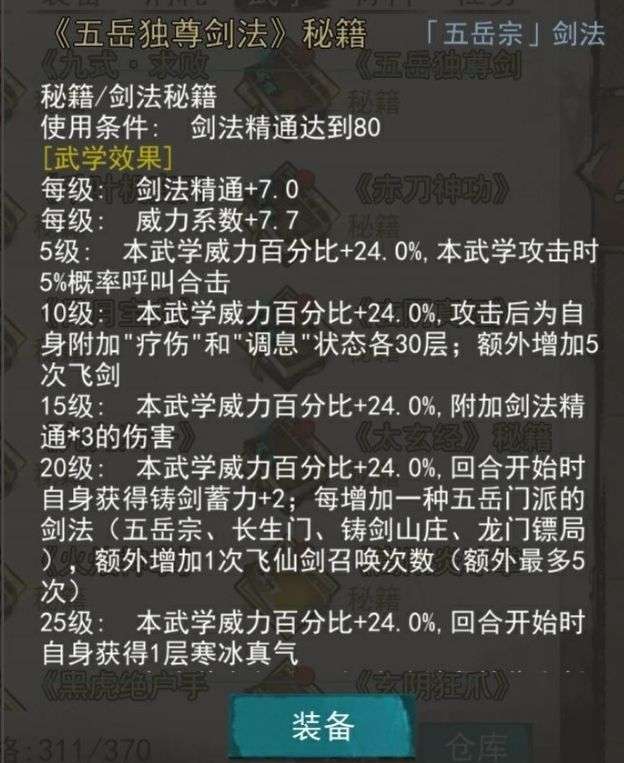 在获得五岳剑法前必须有武学低级武学来支撑,所以低级五岳武学可以等五岳剑法出来后放弃掉)