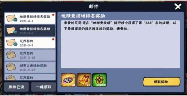 1.周排行榜:周排行榜每周日晚23点59分结算,结算后周排行榜重置,根据忍忍当周获得的成绩发放包含御灵符、竞技币在内的对应奖励。