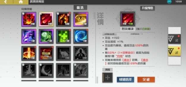 基础搭配,确保开启所有被动,带两个追击属性灵武技