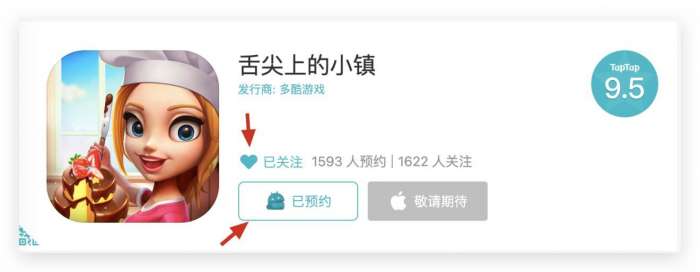 1、在Tap上预约【舌尖上的小镇】手游,并点上关注的小心心;
