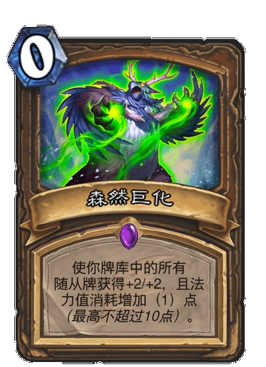 森然巨化会影响牌库中随从的费用,所以使用后,灵力瓜能抽到霍格(已变为7费)。那些原费用就在10点或以上的随从牌不会受到影响。