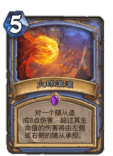 如果火球滚滚击中圣盾随从,结算逻辑与爆炸符文一致,圣盾抵挡等同于该随从生命值的伤害,余下的伤害由下一个随从承受。