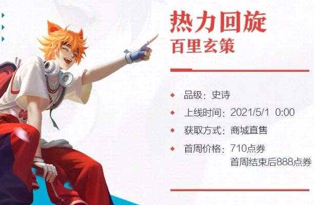 王者荣耀百里玄策五五开黑节皮肤多少钱?怎么得?王者荣耀百里玄策五五开黑节皮肤名称叫做热力回旋哦,很有热血活泼的青春气息呢,那么该皮肤何时上架及价格如何,下面就来详细告诉给大家吧~
