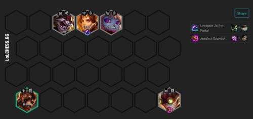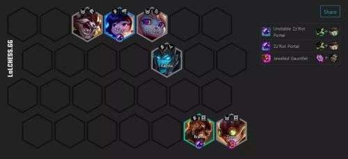 丧失羁绊的关键就是传送门,最佳的搭配是2白1黑,黑传送门虽然可以带来爆破的效果,但是在后期白传送门才是阵容坦度的关键。后期只要环绕着提莫做防护,那么就不缺黑虫子这点损害了