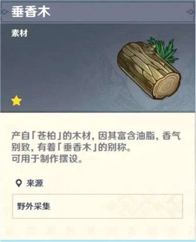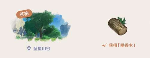 垂香木是产自“苍柏”树木的木材,玩家在野外砍伐苍柏树就可以掉落木材了。使用技能攻击树木即可完成采集。