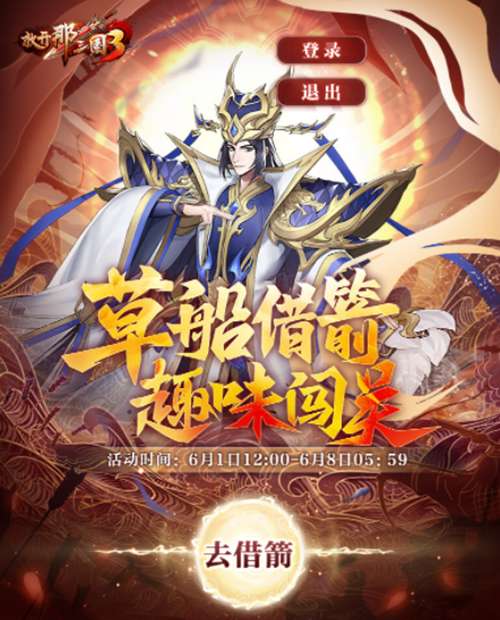 诸葛亮“草船借箭”是《三国演义》中最精彩的故事之一。此次六一趣味福利活动以此为主题,为少主们带来一场敏捷大作战!少主每天可点击【去借箭】参与活动,在规定时间内把所有弓箭射在旋转的箭靶上即为闯关成功。活动共有三关,每通过一关难度会逐渐提升,少主能撑到第几关呢?让我们拭目以待吧!