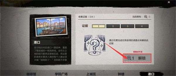 5、最后在调查的界面中点击“解锁”即可获得一个证据,最后集齐所有证据就能找到嫌疑犯。(解锁没有先后顺序)
