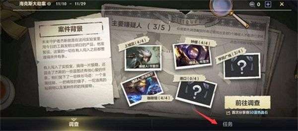4、在海克斯大劫案中会出现很多的线索,不要被这个界面的表现迷惑,随意点击一个场景进去都可以,开启“前往调查”。
